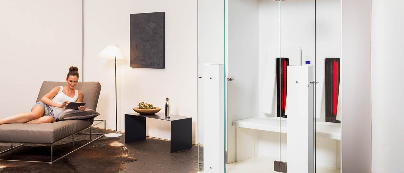 Die klassische Rotlichtlampe ist beliebt und wirksam. Die b-intense Tiefenwärme-Infrarottechnologie der Infrarotkabine hebt diese Wirkung auf ein neues Level. Durch die Nutzung des gesamten Infrarotspektrums (A-, B-, und C-Strahlung) entsteht eine für die menschliche Haut optimale Strahlenverteilung. Die Strahlung dringt bis zu 5 mm tief in die Haut ein und erzeugt in den tieferliegenden Hautschichten eine diffuse und angenehme Erwärmung. Dieser Effekt trifft bereits nach sehr kurzem Aufenthalt in einer Infrarotkabine ein – weitaus schneller als in einer Sauna – und damit auch alle erwiesenen positiven Effekte auf die Gesundheit. Die ideale Länge einer Sitzung in der Kabine beträgt 20 bis 30 Minuten. Eine Zeitinvestition in Ihre Gesundheit und allgemeine Zufriedenheit, die sich mehr als lohnt.