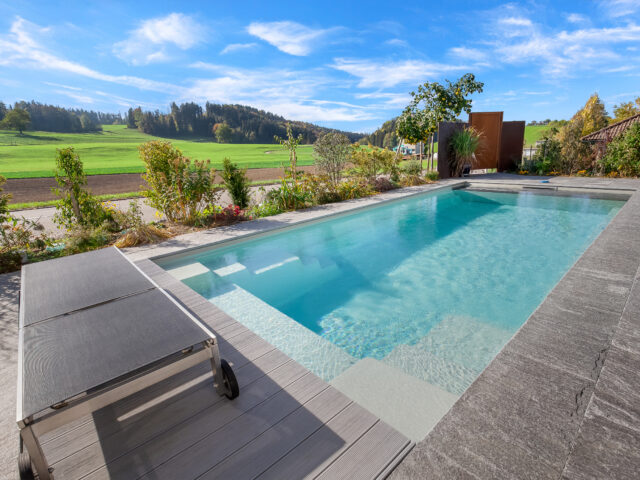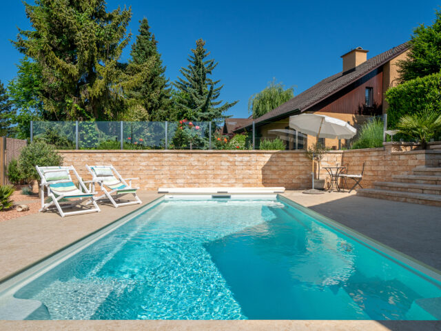 Die Meisten träumen von einem Schwimmbecken das alles bietet – Training, Entspannung und Spass. Das ist der Grund warum wir Elegant Keramik-Schwimmbecken mit zwei bequemen Einstiegsstufen und ausreichend Platz ausgestattet wurde. Somit ist beides möglich: Schwimmen und der Spass im Wasser.