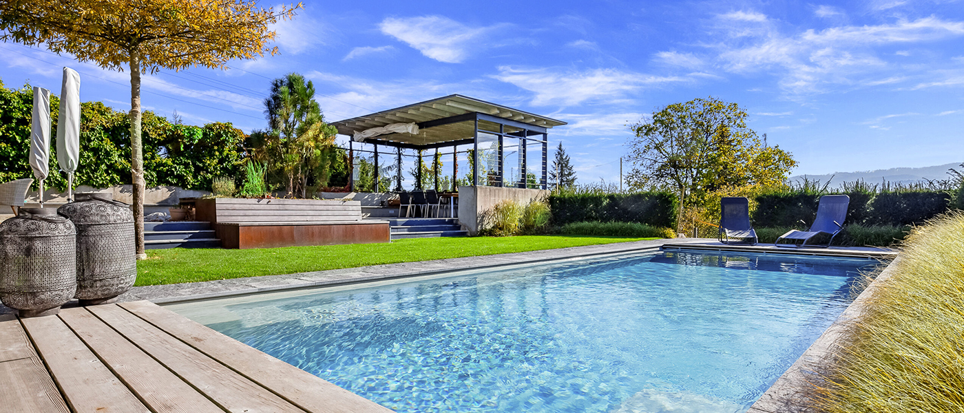 Melden Sie sich bei uns und finden Sie nicht nur heraus, wie wir Ihren Swimmingpool bauen, sondern wie wir Ihren Garten mit einem Pool zu Ihrer eigenen «Feriendestination» vor der Haustür werden lassen.