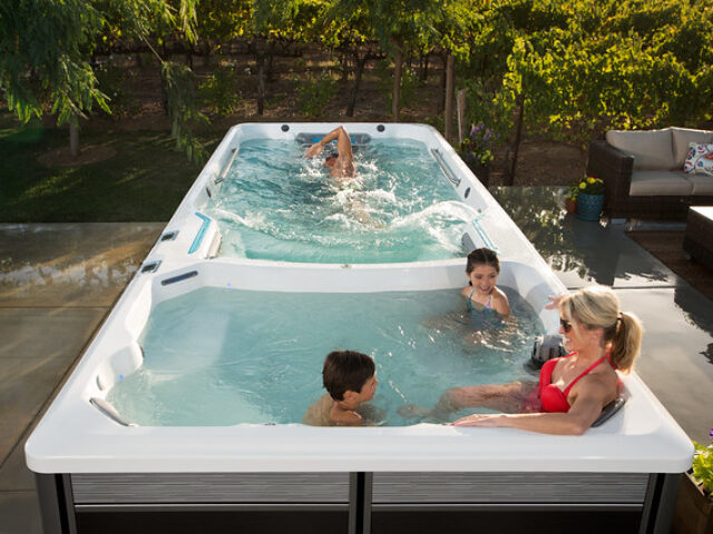 Das Modell E2000, unser 6m Endless Pools Fitness-System bietet Ihnen alles. Der Fitnessbereich hat einen weichen, voll regelbaren Endless Pools Gegenströmung und der Extra-Pool bietet Sitze mit Düsen-Hydromassage.