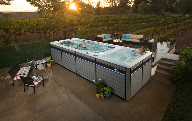 Das Modell E2000, unser 6m Endless Pools Fitness-System bietet Ihnen alles. Der Fitnessbereich hat einen weichen, voll regelbaren Endless Pools Gegenströmung und der Extra-Pool bietet Sitze mit Düsen-Hydromassage.